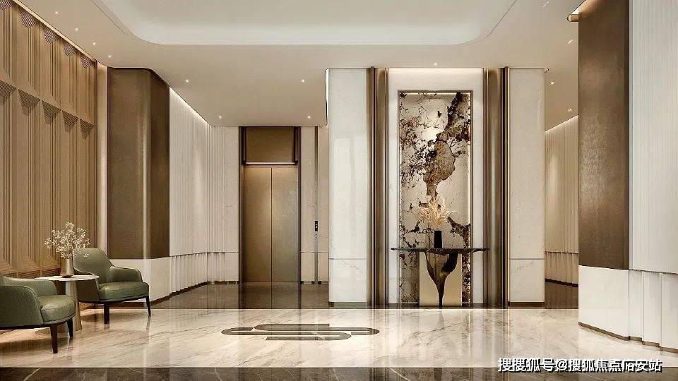 泛会所空间打造了丰富社交功能空间,更匹配高净值业主的私享需求,米色大理石背景墙体现高级质感,镂空屏风透出社区景观的绿意盎然。