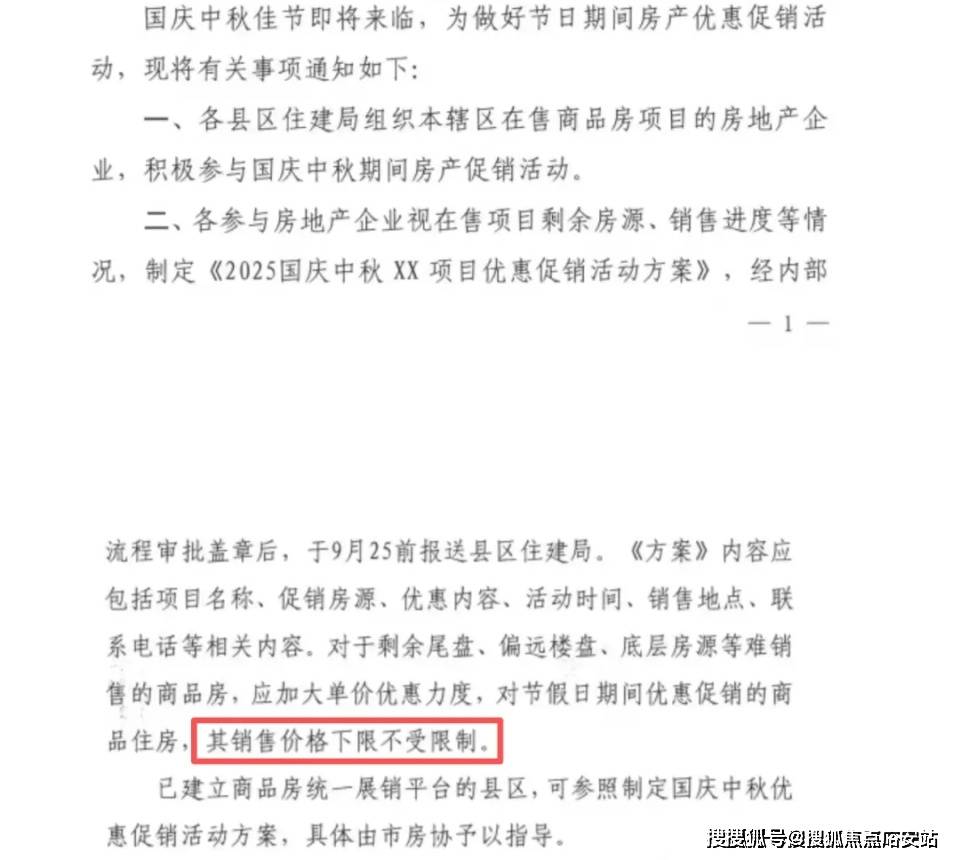 福建莆田市住建局发布的公告显示,国庆中秋节日来临,做好房产优惠促销活动,各县区住建局组织本辖区在售商品房项目的开发企业积极参与,企业根据剩余房源、销售进度制定优惠促销活动方案,对于剩余尾盘、偏远楼盘、底层房源等难销售的商品房,加大单价优惠力度,对节假日期间优惠促销的商品住房,销售价格下限不受限制。