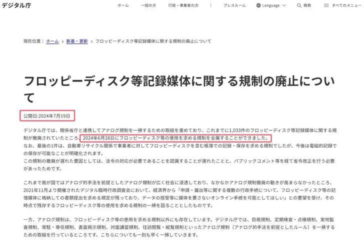 德国和日本企业的数字化转型就颇为缓慢。比如,日本政府直到2024年7月才宣布在政府机构中全面淘汰软盘,而为了淘汰这个容量只有1.4MB的3.5寸存储器,日本用了三年多的时间,修改了1000多项法案,才得以成行;