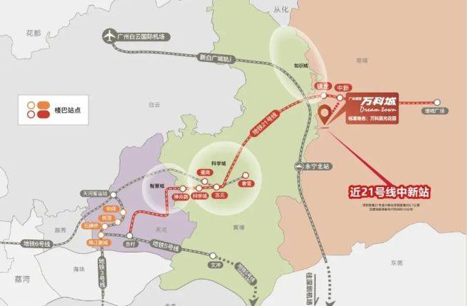 广州增城万科城的交通优势显著,构建了一个多层次、全方位的交通体系。在地铁出行方面,距离 21 号线 分钟路程,搭乘快线 站就能抵达科学城(苏元站),4 站可直达天河(智慧城),大大缩短了与城市核心区域的时空距离,满足业主日常通勤、商务出行以及休闲娱乐的需求。高速公路方面,出门即可便捷驶入花莞高速与增天高速(预计 2025 年通车)。增天高速通车后,20 分钟就能直达天河,极大提升了与市中心的连接效率;花莞高速则让业主在 25 分钟内可到达东莞(石碣),30 分钟抵达白云机场,为跨城出行和商务活动提供了便利。城轨方面,新白广城际预计 2024 年通车,项目距离【永宁北站】约 2km,通过该站 2 站可到达新塘 TOD,还能直达白云机场与深圳国际机场,进一步拓展了出行范围,加强了与大湾区其他重要城市的联系。此外,小区楼下每天提供 31 班接驳巴士,直达中新、镇龙、科学城、珠江新城、五山、石牌桥等城市重要区域,弥补了公共交通覆盖的不足,为业主提供了多样化的出行选择。