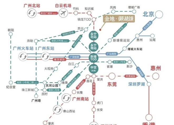 项目在交通方面展现出巨大的发展潜力。增天高速预计 2025 年底通车,届时自驾仅需 30 分钟就能直达天河珠江新城,大大缩短了与城市核心区域的时空距离,满足居民日常通勤、商务出行以及休闲娱乐的需求。同时,永宁北站的新白广城际正在建设中,建成后 1 站可达黄埔 / 新塘 TOD,3 站即可通往东莞 / 深圳,还能快速接驳白云机场。这不仅加强了区域之间的联系,拓展了居民的生活与工作半径,也提升了项目的区域价值,使其在大湾区的交通网络中占据重要位置,为居民的跨城出行、商务活动和旅游提供了便捷条件。